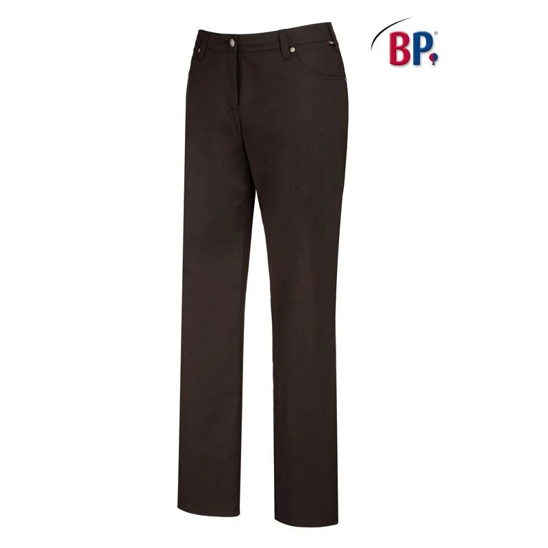Diese moderne BP Damenjeans in schwarz mit moderner Form, klassischer Farbe und gut bedachten Funktionen überzeugt in der Gastronomie. Aus einem ausgesuchten Mischgewebe mit Stretchanteil ist diese BP Five-Pocket-Damenjeans in schwarz anspruchsvoll gefertigt. Damit hat diese BP Jeans einen passgenauen Sitz bietet jedoch angenehme Bewegungsfreiheit und höchsten Tragekomfort. Außerdem ist diese BP Damenjenas mit 2 Vordertaschen, eine mit integrierter Uhrentasche und 2 Gesäßtaschen mit Zierstepp an. Modern sind die Nietenbesätze und der praktische Sattel. Eine perfekte Arbeitshose die genau so schick ist wie eine Freizeithose.