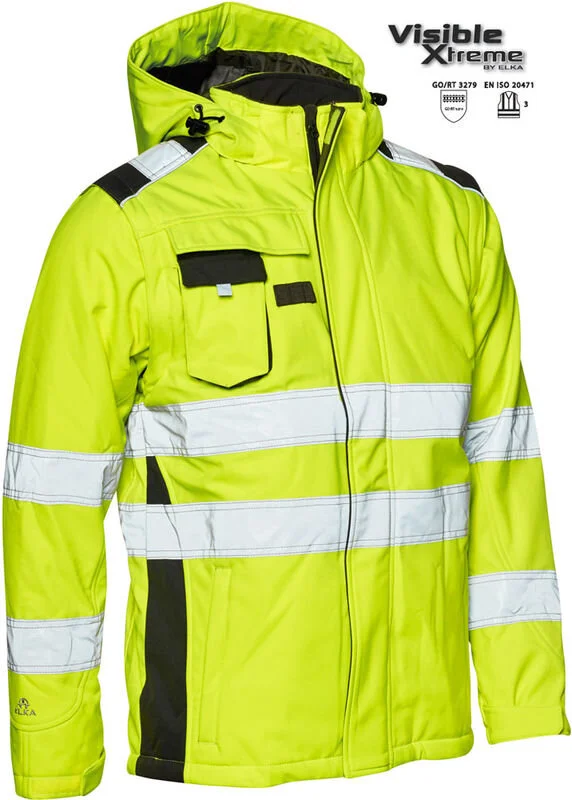 wasserabweisende, winddichte als auch warme und hochmoderne Elka Warnschutz Softshell Jacke 116514R. Diese Jacke bietet Ihnen dank ihres warem Thermofutters auch an kalten tagen besten Schutz und ist besonders geeignet für den Winter. Diese Jacke kann man sowohl als Weste tragen das sie abnehmbare Ärmel hat. Des weiteren ist die Kapuze dieser Jacke abnehmbar.