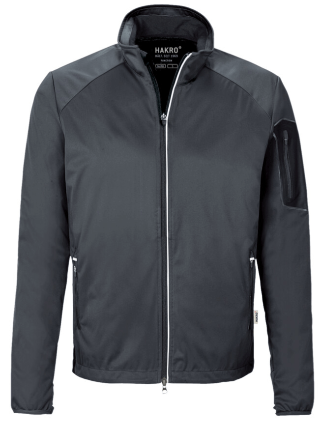 Die leichte und atmungsaktive Softshelljacke von Hakro ist ein Topseller bei Corporate Wear für Ihre einheitliche Arbeitskleidung.
