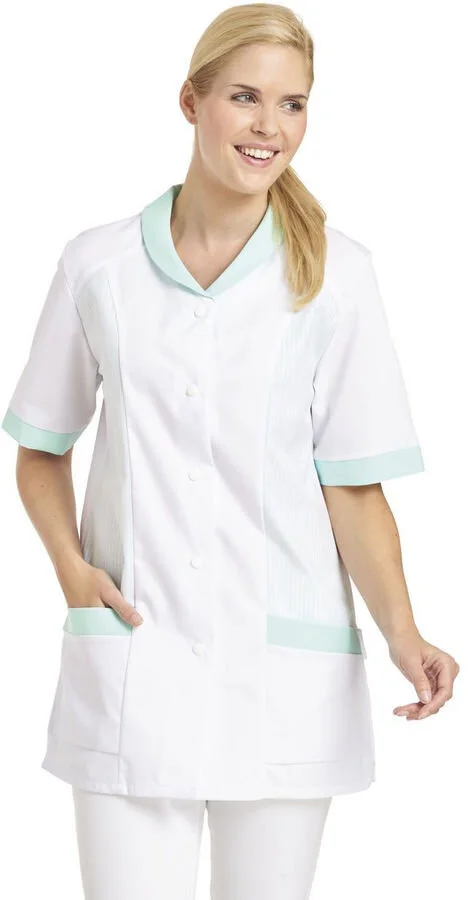 dieser Leiber Kasack 08/800 für Damen ist pflege- und bügelleicht. Des Weiteren hat dieser Leiber Damenkasack einen praktischen Druckknopfverschluss. Außerdem ist sie Industriewäsche geeignet dadurch können auch tiefe Flecken entfernt werden.