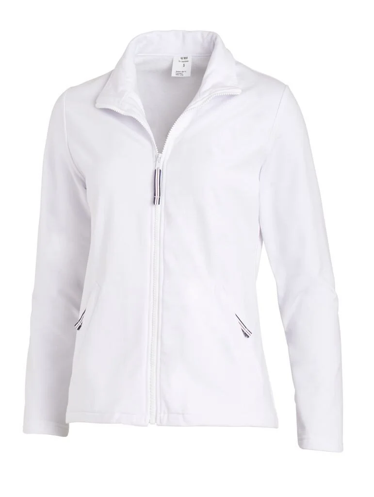 Diese moderne Leiber Damen-Sweatjacke ist in weiss und marine erhältlich. Sie besitzt 2 Seitentaschen mit Reißverschluss und ist dadurch sehr praktisch. Sie ist in vielen Größen erhältlich.