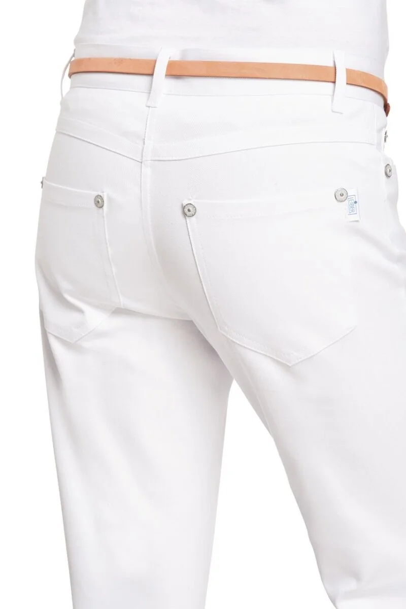 Diese moderne Leiber Damenhose 5 Pocket-Form „Classic-Style“ besteht aus strapazierfähigem Strechgewebe. Sie besitzt normale Leibhöhe Jeansknopf mit passenden Nieten sowie aufgesetzte Taschen. Außerdem ist sie in vielen Größen erhältlich.