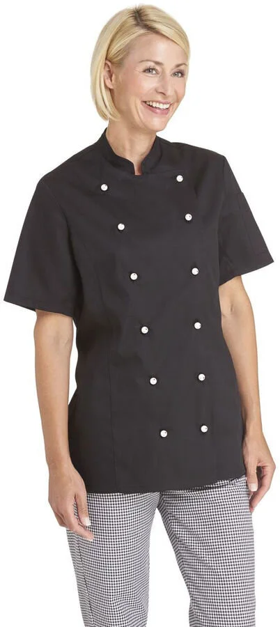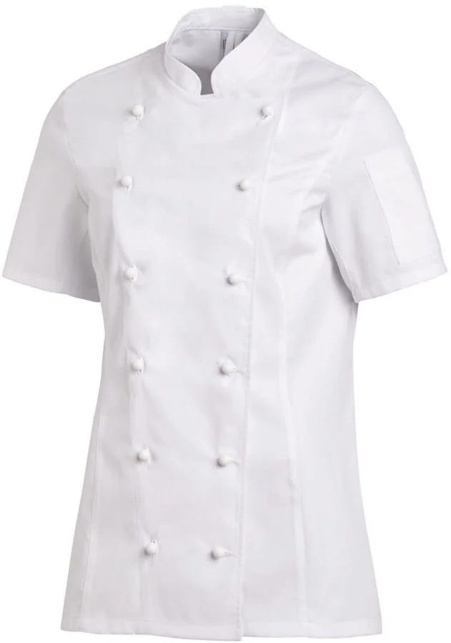 Eine elegante Leiber Damen Kochjacke 08/2519 die aus pflegeleichtem Mischgewebe gefertigt wurde. Diese Kochjacke ist in frischen modernen Farben wie schwarz, bordeaux und weiß erhältlich. Die Teilungsnähte betonen Ihrer Figur und machen diese Kochjacke zu einem Hingucker in Küche, Service oder Hotel.