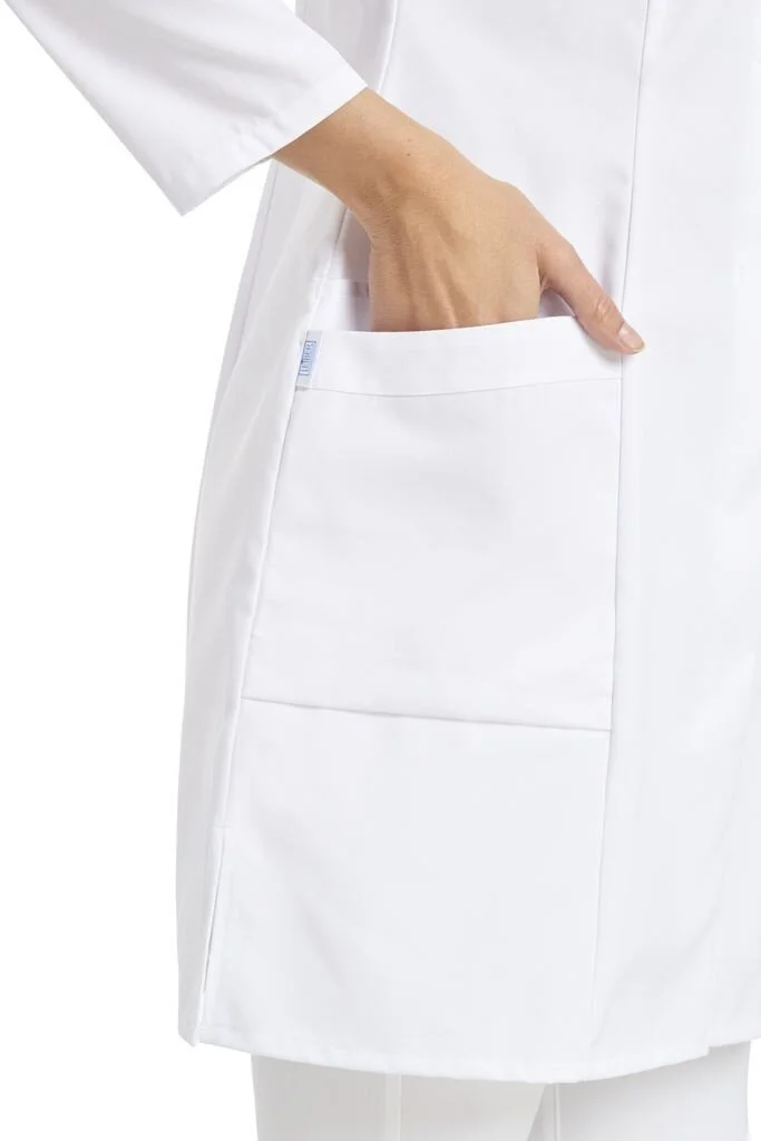 ein moderner Leiber Damenmantel 08/2513 mit V Ausschnitt und verdeckter Druckknopfleiste. Des Weiteren verfügt dieser Mantel für Damen über zahlreiche nützliche Taschen.