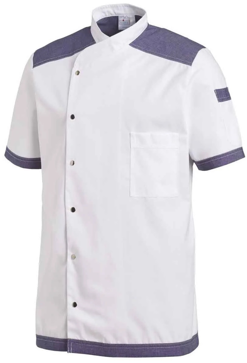 Sportlich moderne Leiber Kochjacke halbarm für Herren. Diese Kochjacke ist aus pflegeleichtem Mischgewebe gefertigt und bietet Ihnen einen hervorragenden Tragekomfort. Mit Leiber Berufsbekleidung modern und elegant bei der Arbeit gekleidet.