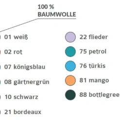 | Farbe | weiß/gelb, weiß/grün, weiß/königsblau, weiß/rot |