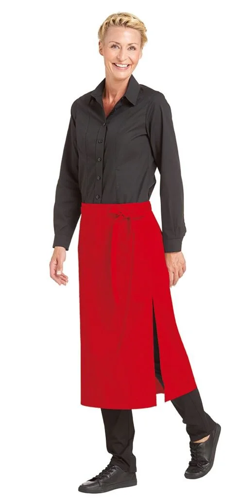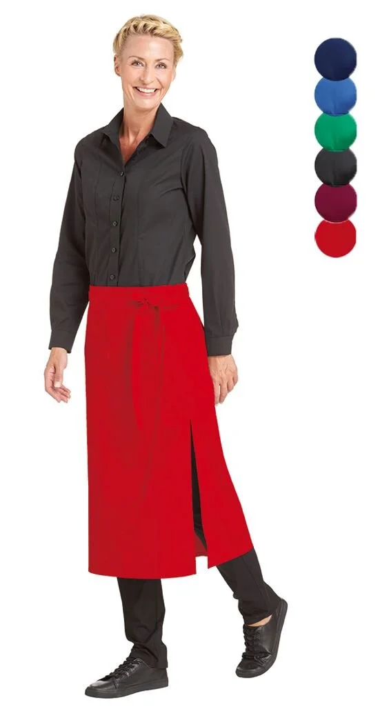 Praktische Schürze mit Bindebänder aus Oberstoff und seitlicher Gehschlitz für den eleganten Auftritt.