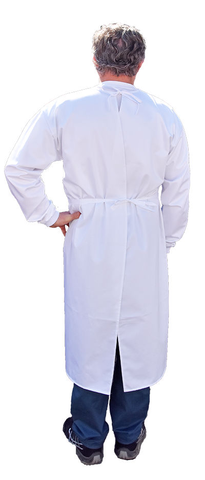 Rückenschlußmantel oder auch Kittel genannt aus Nano beschichtetem Stoff (wasserabweisend), wiederverwendbar und desinfizierend waschbar