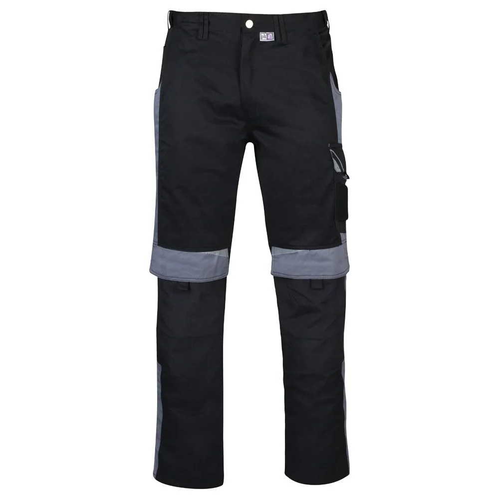 diese moderne PKA Bundhose Arbeitshose in verschieden Farben aus der Bestwork New Kollektion bietet eine optimale Passform mit 3-fach Kappnähten.Die Arbeitshose ist mit reflektierenden Applikationen ausgestattet und bieten einen angenehmen Tragekomfort. Der Hosenbund diser PKA Bundhose ist dehnbar durch flexibles Gummiband. Diese Arbeitshose hat 2 integrierte Eingrifftaschen und einen Metallreißverschluss im Hosenschlitz.Des Weiteren verfügt die Bundhose über 2 verstärkte Gesäßtaschen mit Patte und Klett und eine 1 Cargotasche mit integrierter Handytasche und Zusatztasche.Die Zollstocktaschen haben zusätzlich aufgesetzten Zusatztaschen und reflektierende Applikationen.