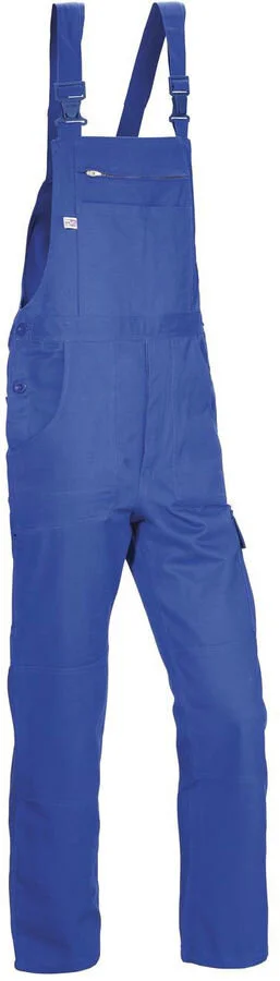 Die PKA Latzhose Basic Plus ist aus Baumwolle gefertigt. Diese Latzhose hat einen hochgezogener Rücken und Latzträger aus Stoff mit kurzem starken Gummizug.