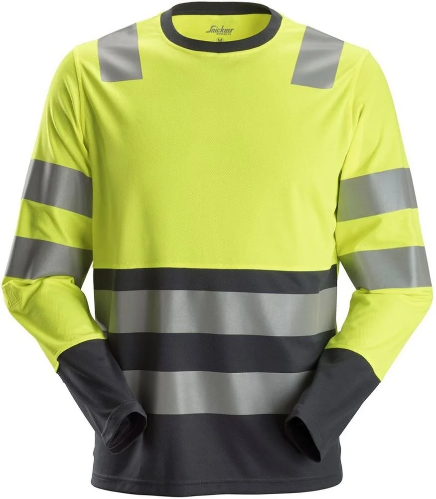 Gut sichtbares High-Vis-T-Shirt mit langen Ärmeln, das eine effiziente Belüftung und ein luftiges Gefühl bietet. Zertifiziert nach EN 20471, Klasse 2.