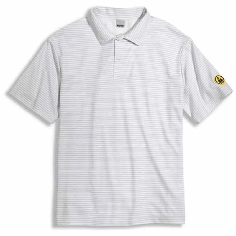 ESD Polo Shirt 98627 der Marke Uvex. ESD Bekleidung ist Arbeitsbekleidung für Bereiche, in denen die Gefahr besteht, das eine elektrostatische Entladung Materialien oder Bauelemente nachhaltig beschädigt oder zerstört.
