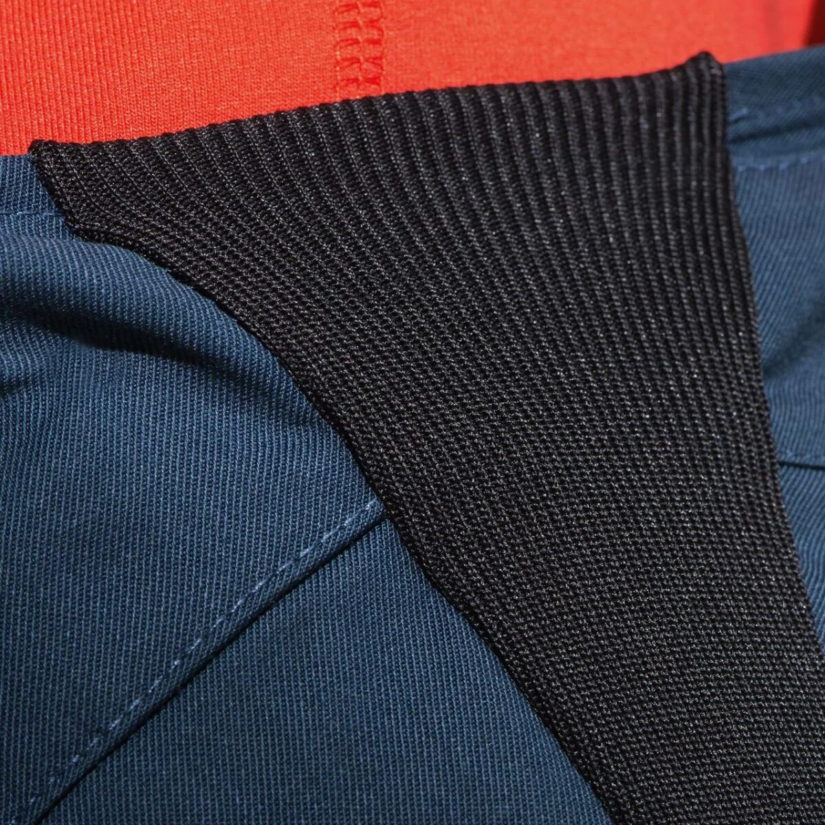 - Bund, Träger und Belüftungszonen am hinteren Oberschenkel jeweils mit Stretchmaterial