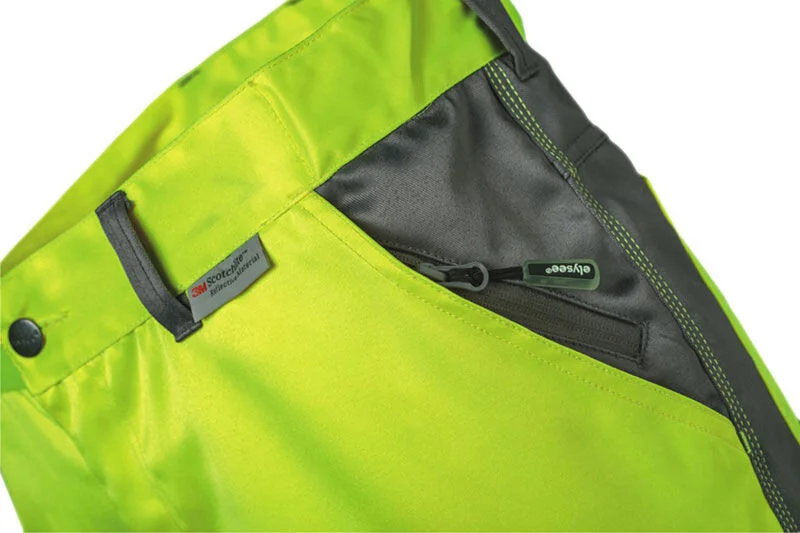 hochsichtbare und moderne Warnschutz Bundhose Paris der Marke elysee. Diese Warnschutzhose ist in der Farbkombination fluoreszierend gelb/grau erhältlich.