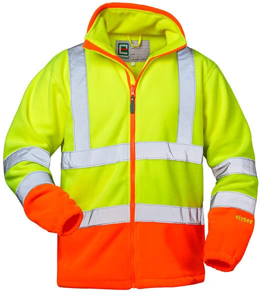 warme Warnschutz Fleecejacke Leo der Marke elysee. Diese Warnschutzjacke in der Farbkombination gelb /orange hilft durch die hohe Sichtarbkeit aktiv Unfälle zu verhindern, da Sie wesentlich besser bei Dunkelheit und schlechten Sichtverhältnissen gesehen werden.