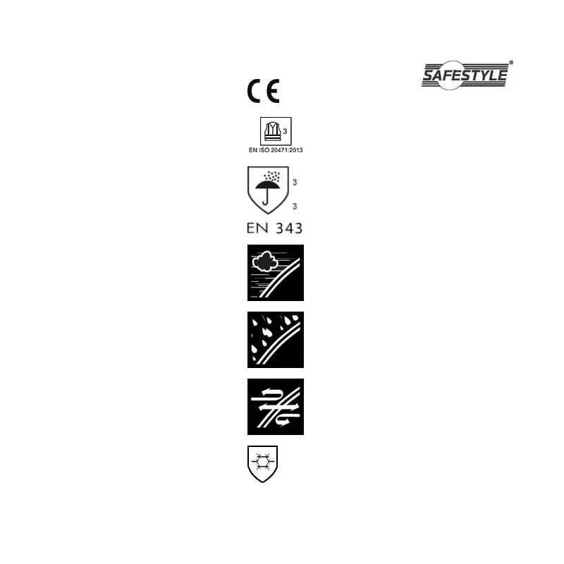 Norm EN ISO 20 471, Klasse 3 (Innenjacke separat Klasse 2, Innenweste separat Klasse 2), EN 343 Klasse 3, EN 14058 Klasse 1, EN 340