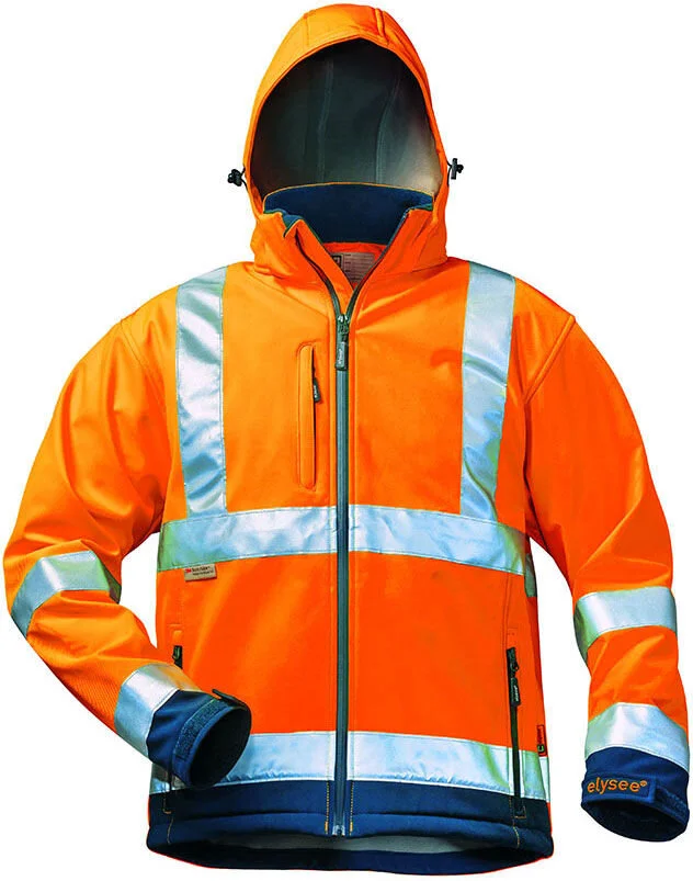 moderne Warnschutz-Softshell Jacke BILL – elysee in der Farbkombination fluoreszierend orange/marine. Diese elysee Softshell Jacke ist wind- und wasserdicht, so sind Sie optimal vor schlechtem Wetter geschützt.